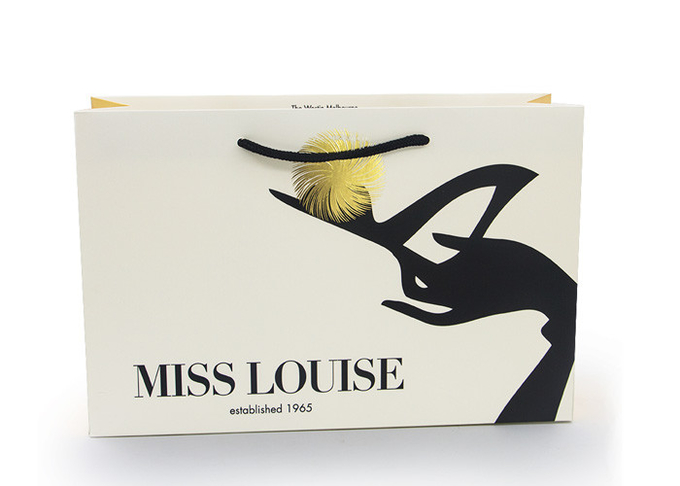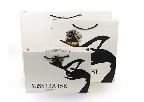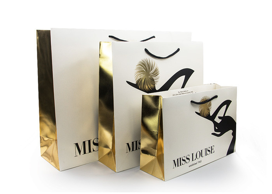 | nama Produk | Personalized emas tas kertas hot stamping belanja dengan pegangan tali hitam |
