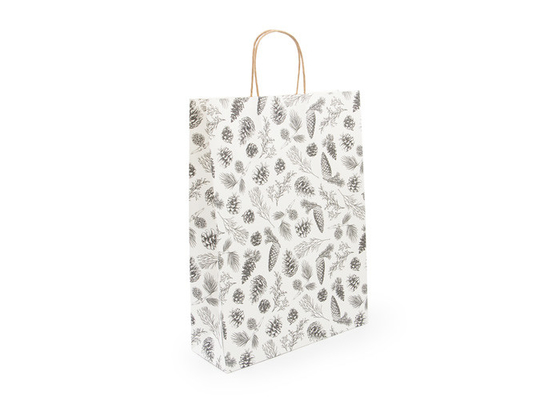 mewah die-cut putih kertas kraft hadiah tas natal dengan pegangan bengkok